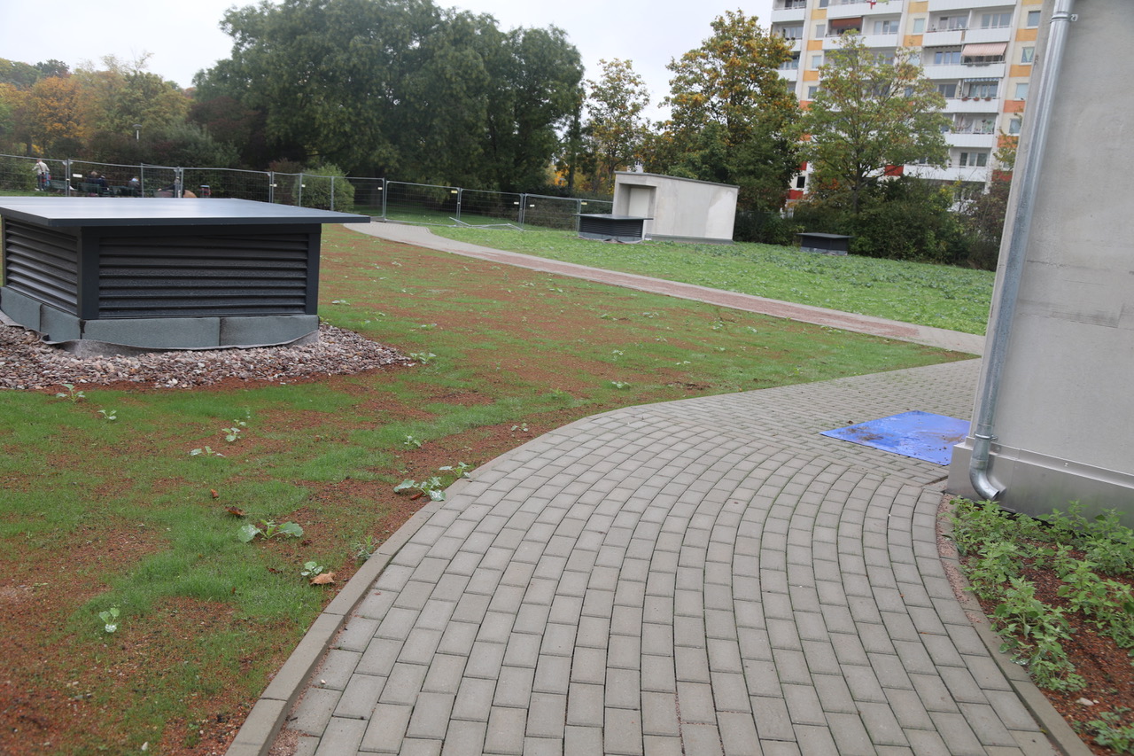 Das moderne Zoopark Center wird eine umfassende Nahversorgung der Bewohner des Roten Bergs sichern und darüber hinaus ein attraktives Ortsteilzentrum bilden. In Kürze haben dann auch die provisorischen Container-Verkaufsstellen ausgedient, die nach dem Abriss des vormaligen Einkaufszentrums immerhin das Notwendigste in fußläufiger Entfernung offerierten.