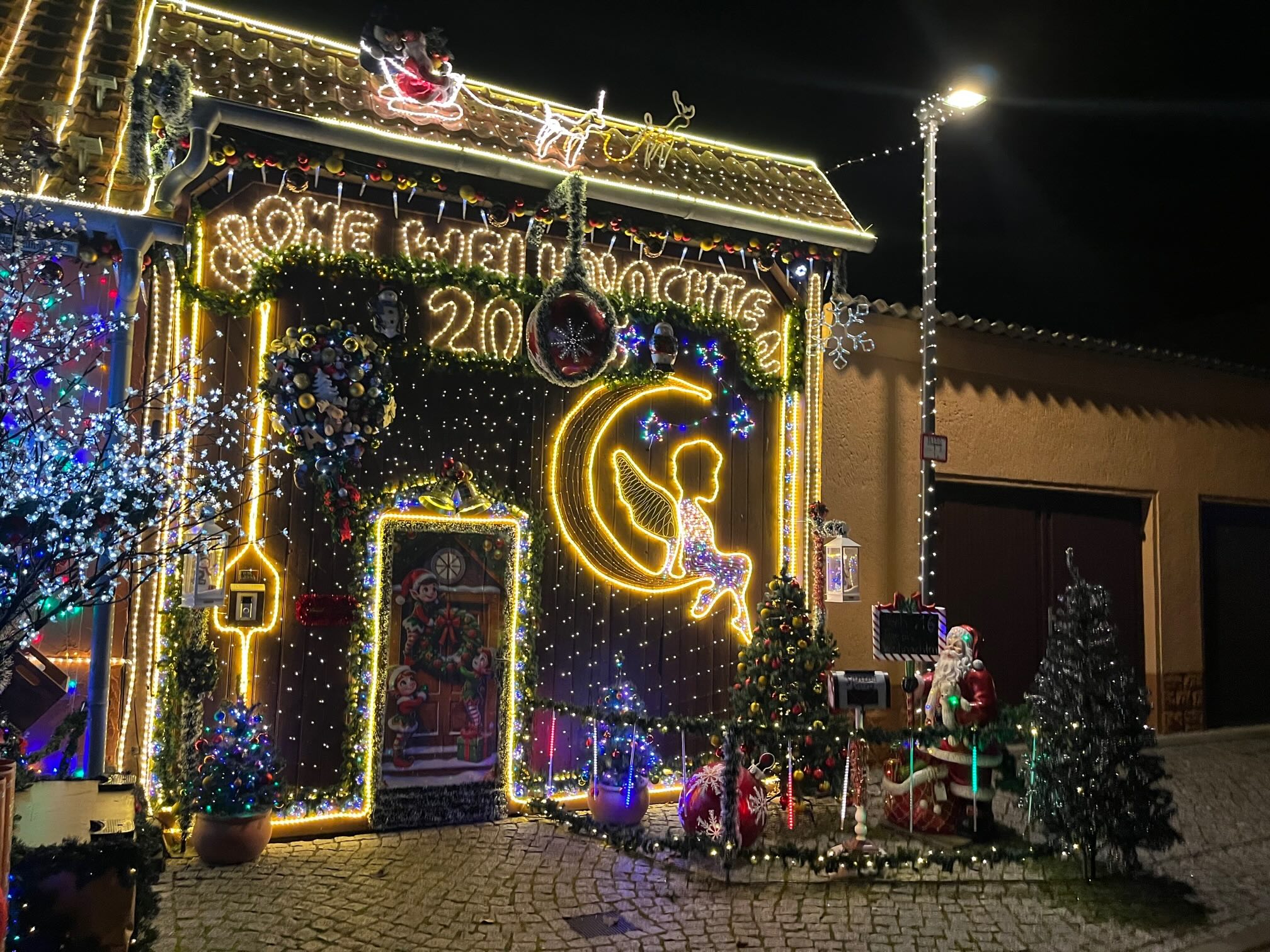 Diesem Vorbild folgt man hierzulande step by step. Seit vielen Jahren schon verwandelt Familie Leicht in Walschleben (Bahnhofstraße) ihr Haus in ein wahres Weihnachtsrefugium. Abertausende Lichter erhellen die dunkle Jahreszeit, bewegliche Elemente und beleuchtete Figuren lassen den Betrachter immer wieder Neues entdecken. Unzählige Besucher zieht es dorthin aus der näheren und weiteren Umgebung. Und der dort platzierte Weihnachtsmann zählt die Tage bis Heilig Abend. Einfach sehenswert.
